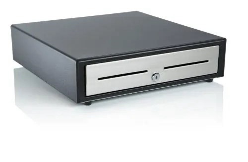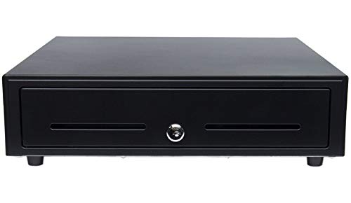 • DURABLE POS CASH DRAWER:  Cash register drawer with round corners measures 14"x13.25"x4", Color: black, and Voltage: 12VDC. Our cash drawer has a heavy duty durable metal frame that is an ideal cash register for small businesses and even big establishments too.